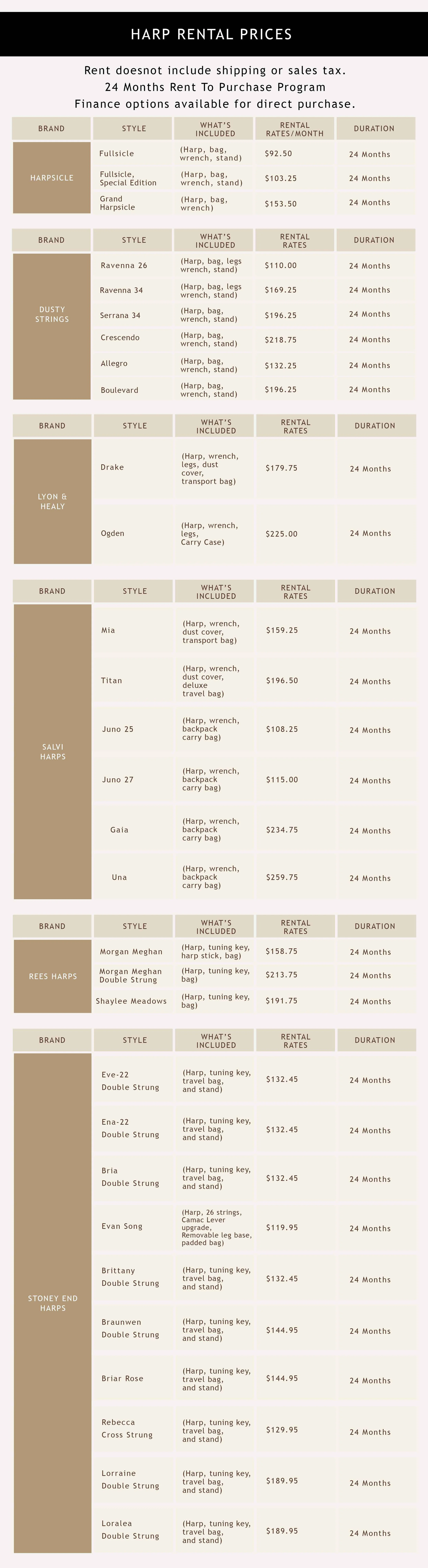 Embark on a harmonious adventure with our comprehensive selection of harps and essential accessories. Browse our Harp page for a comprehensive overview of our exquisite offerings, or delve into individual harps for detailed descriptions. Prepare for an extraordinary start to your musical exploration!