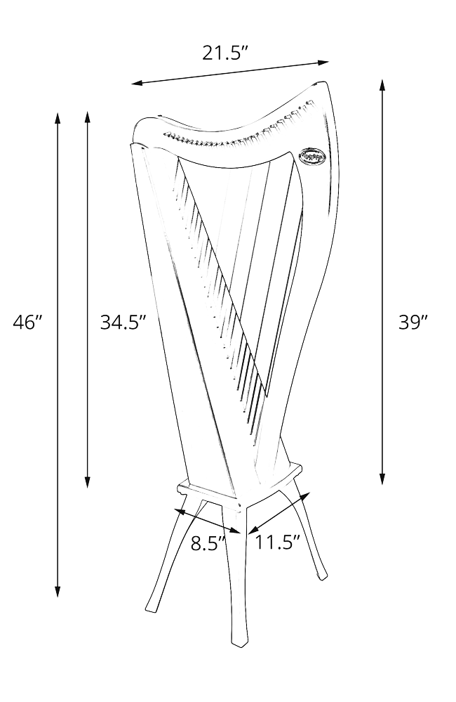 Note: the weight can vary by up to 2 pounds, depending on the density of the particular tree from which the harp was made.
