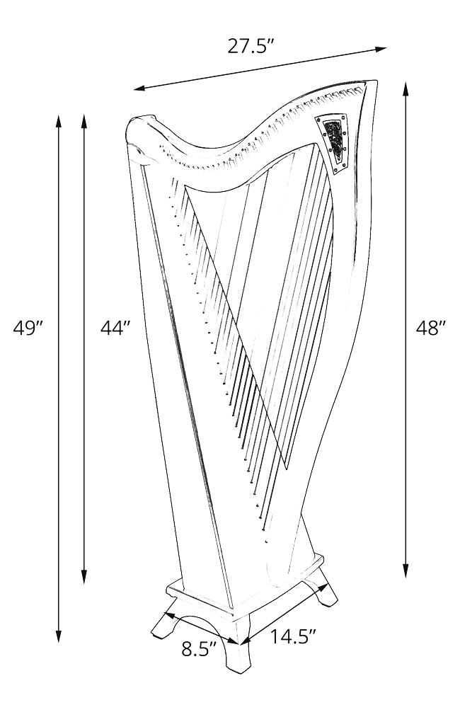 Note: the weight can vary by up to 2 pounds, depending on the density of the particular tree from which the harp was made.