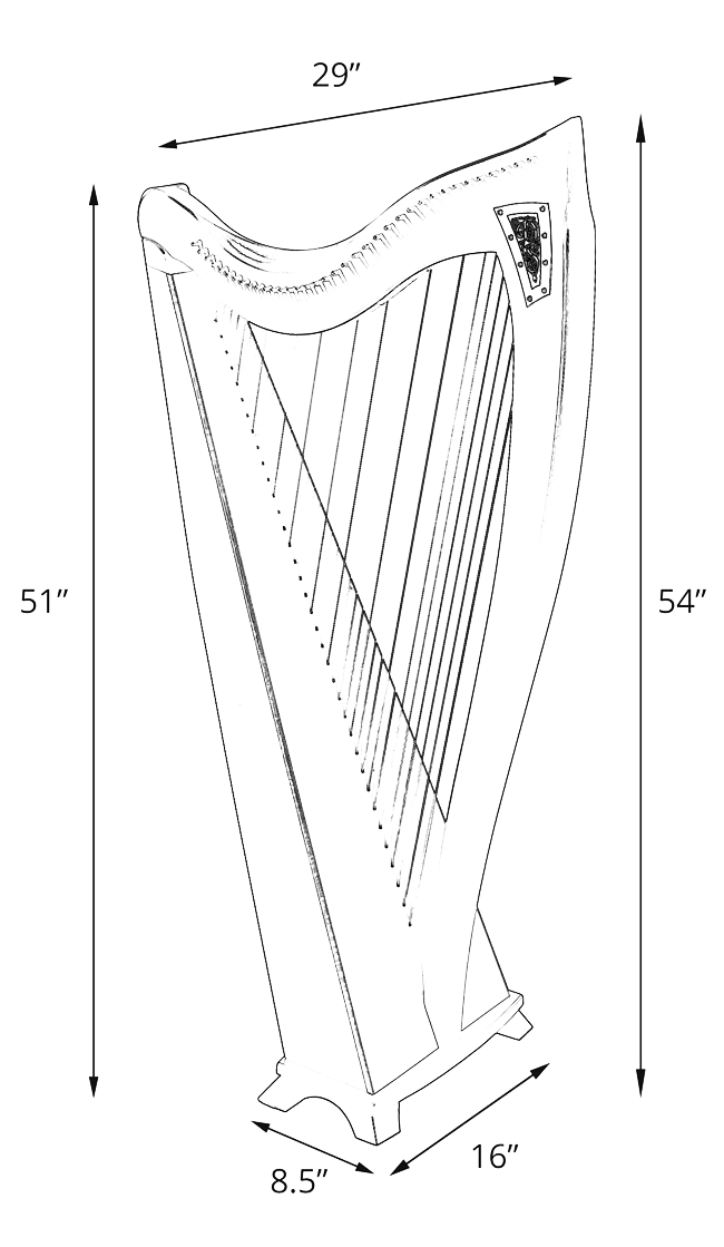 Note: the weight can vary by up to 2 pounds, depending on the density of the particular tree from which the harp was made.